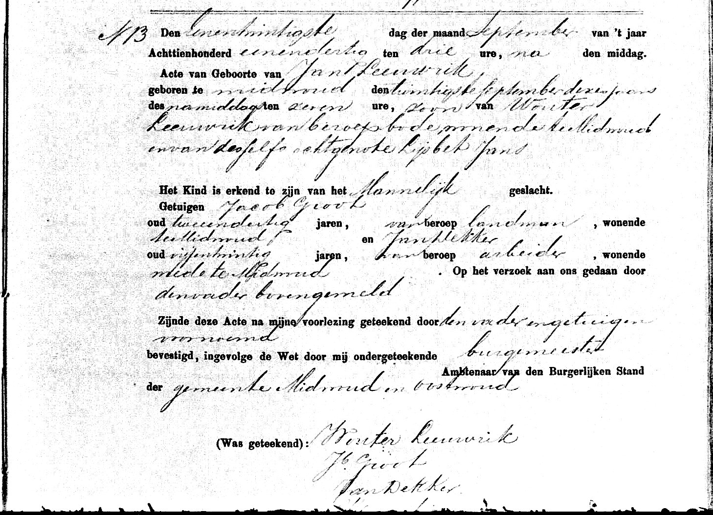 Geboren: 20-09-1831 te Midwoud