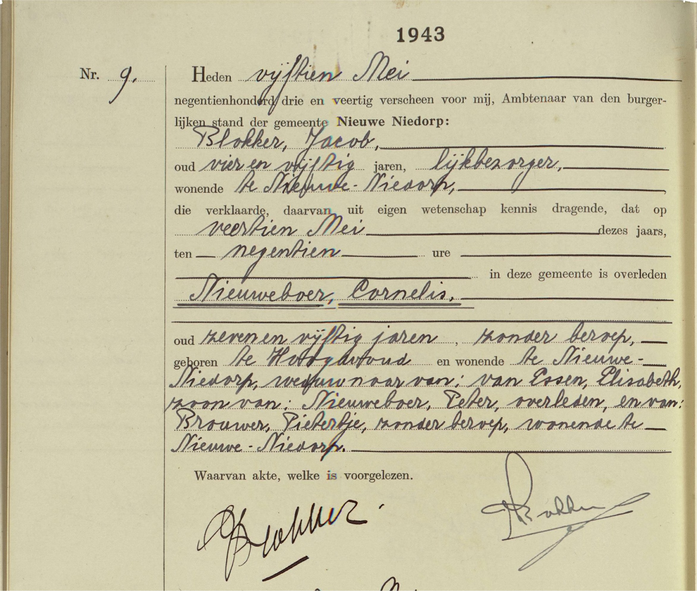 Overleden: 14-05-1943 te Nieuwe Niedorp