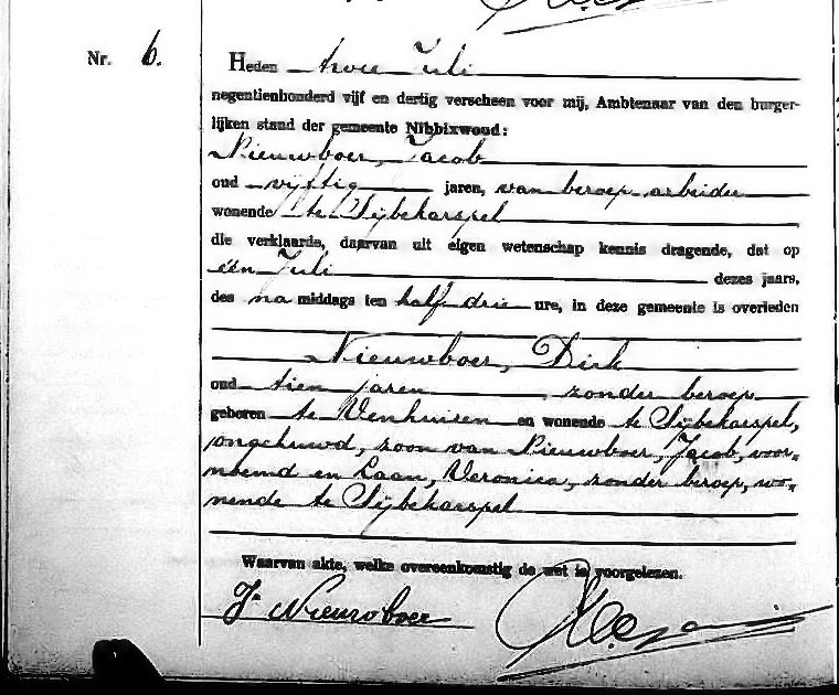 Overleden: 01-07-1935 te Nibbixwoud Begraven te Nibbixwoud