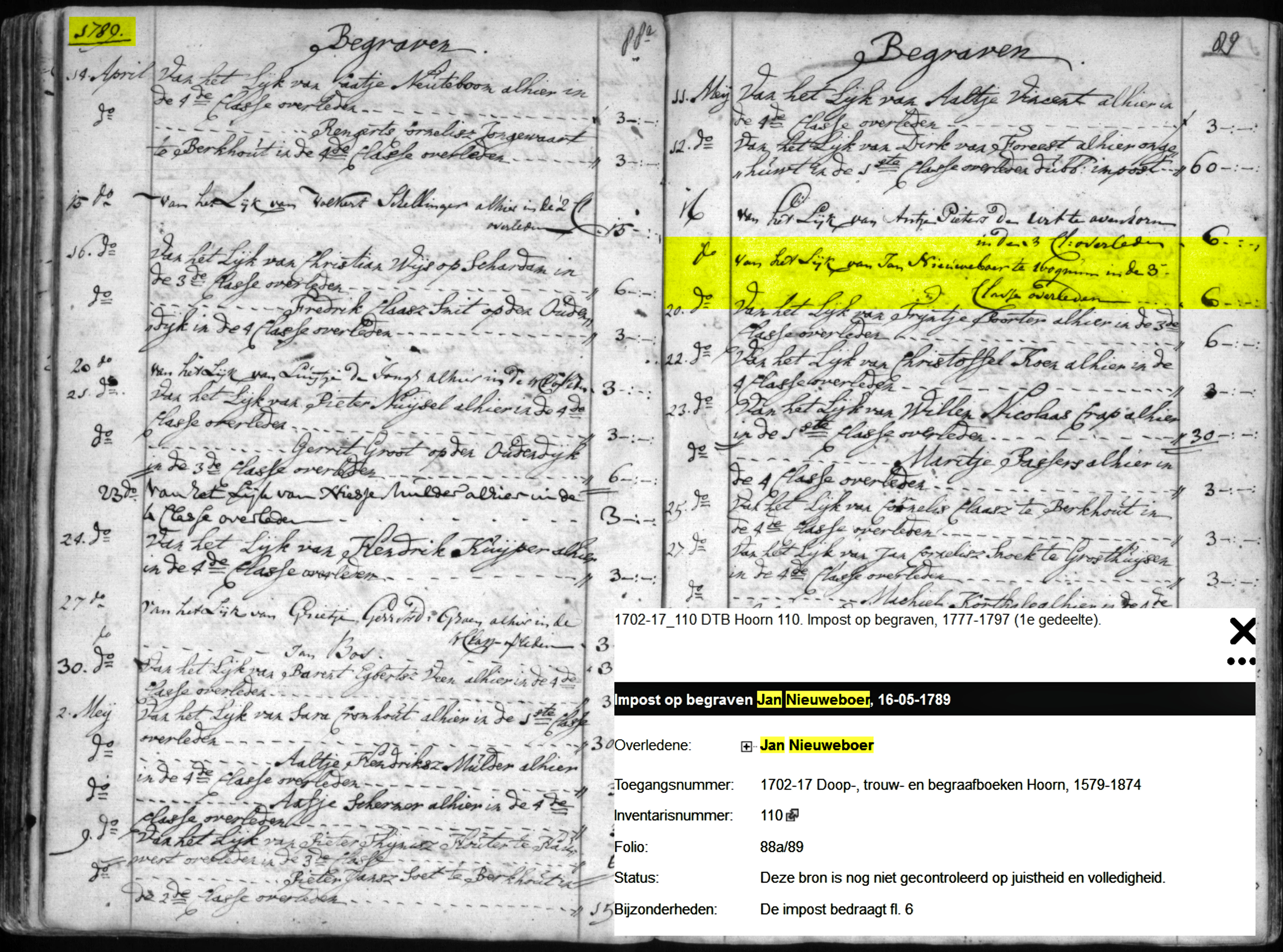 Overleden: 16-05-1789 Begraven 19-05-1789 te Wognum