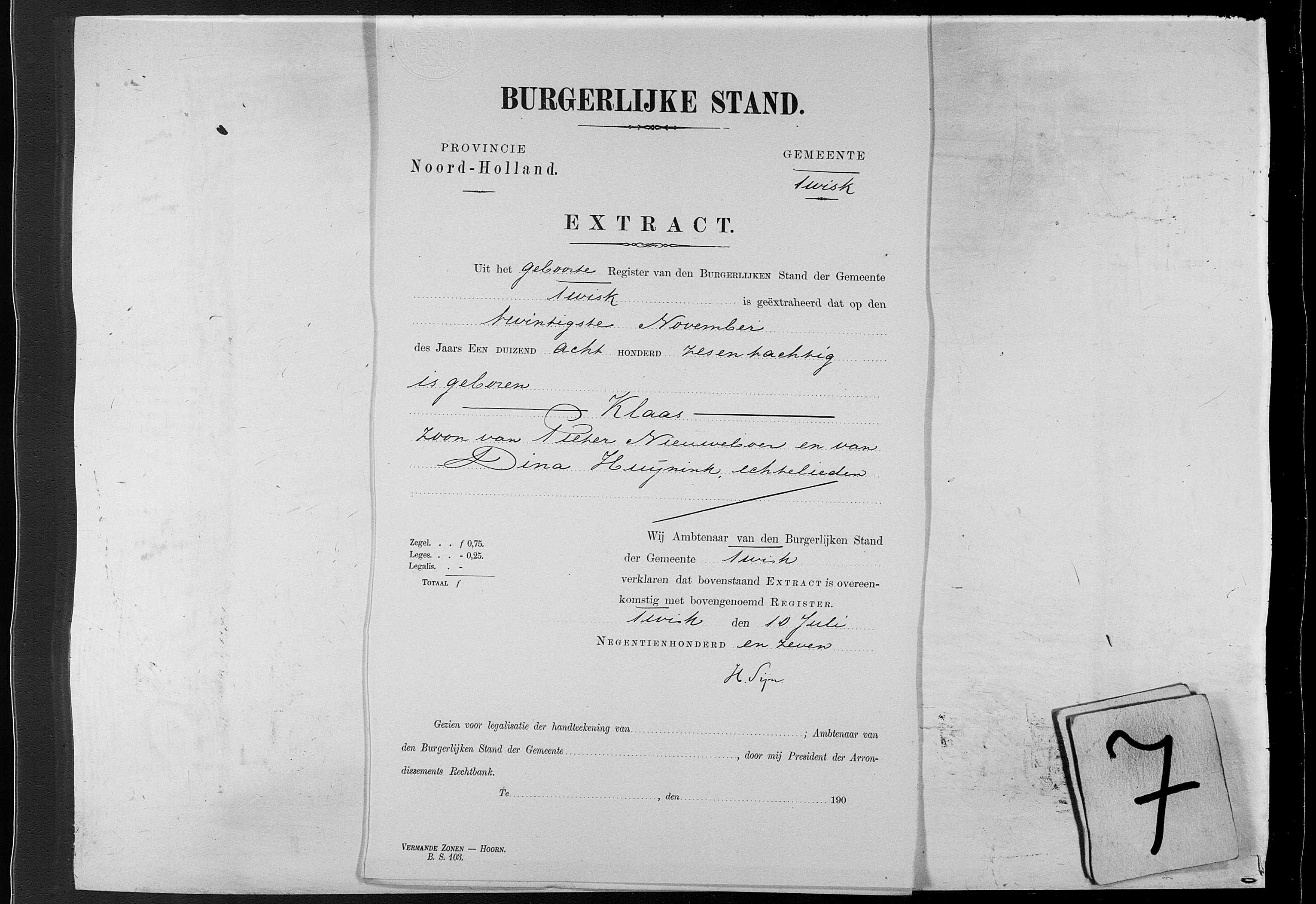 op 01-08-1907 te Twisk