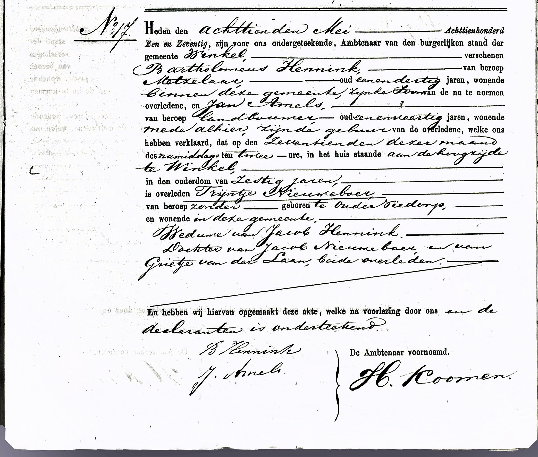 Overleden: 17-05-1871 te Winkel