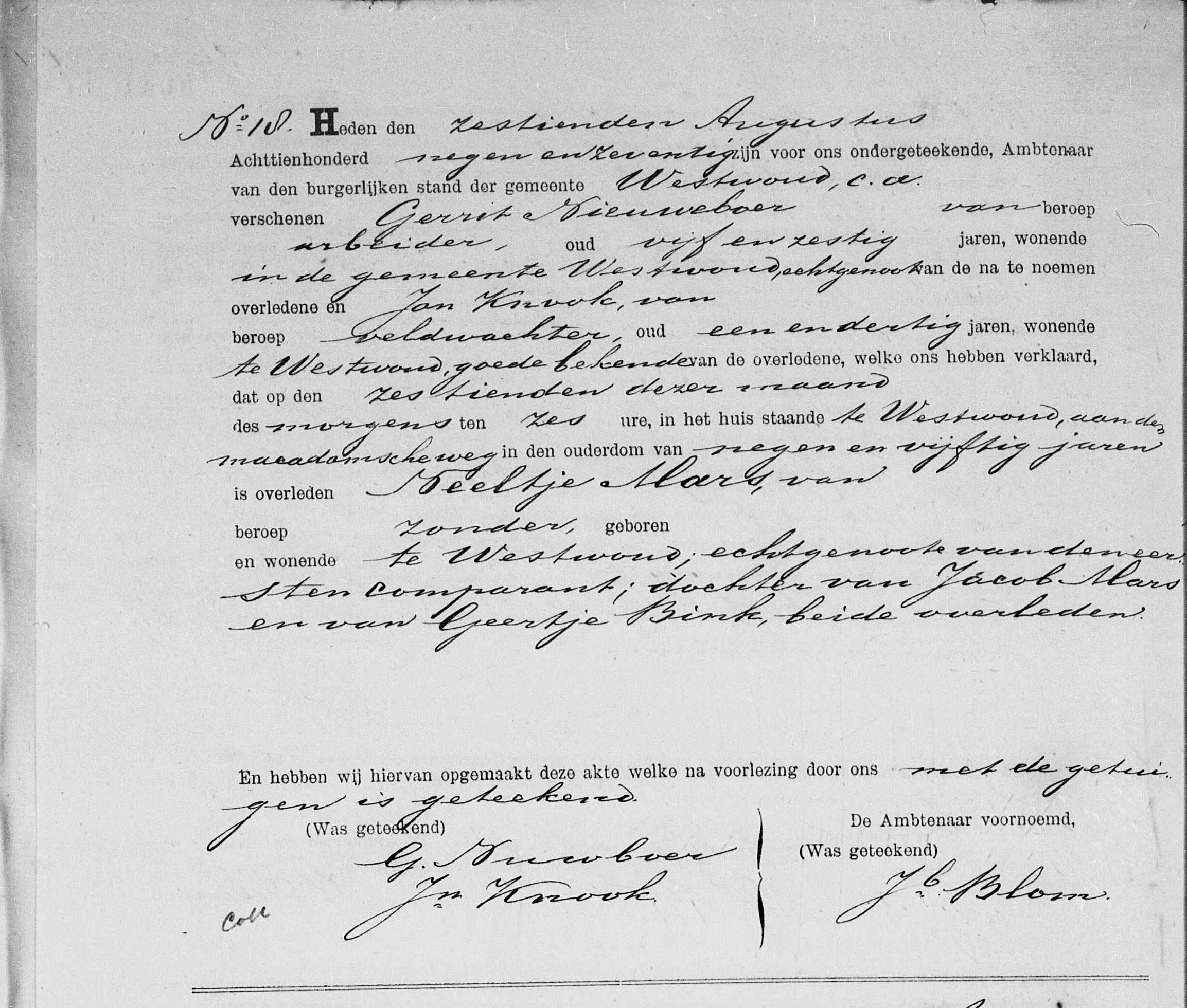 *09-09-1844 te Westwoud 28-08-1929 te Blokker