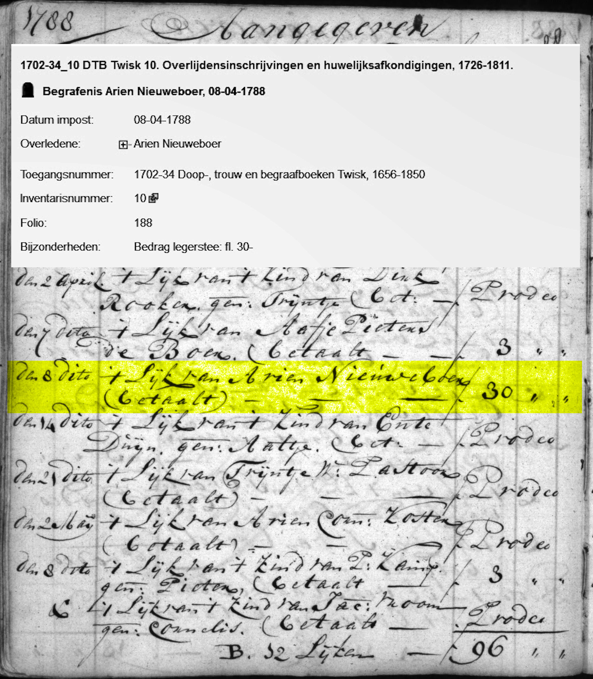 Overleden: 04-04-1788 te Twisk Begraven 08-04-1788 te Twisk